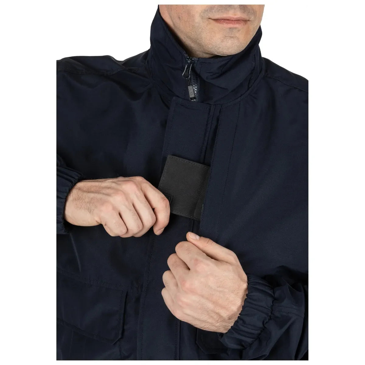 The Fast-Tac® Duty Jacket is our response when you need a purpose-built functional jacket for work. Constructed from a coated polyester plain-weave material, the Fast-Tac® Duty Jacket seals out the elements with a one-way front zipper with external storm flap, an adjustable shock cord system front, tunneled elastic back hem, and elastic cuffs. Two hand warmer pockets provide added warmth on those frigid shifts. Secure your paperwork and other gear inside the cargo pockets, the left chest document pocket and inside left chest pocket. We even included a glove/key clip in the left cargo pocket so you never have to search for them.