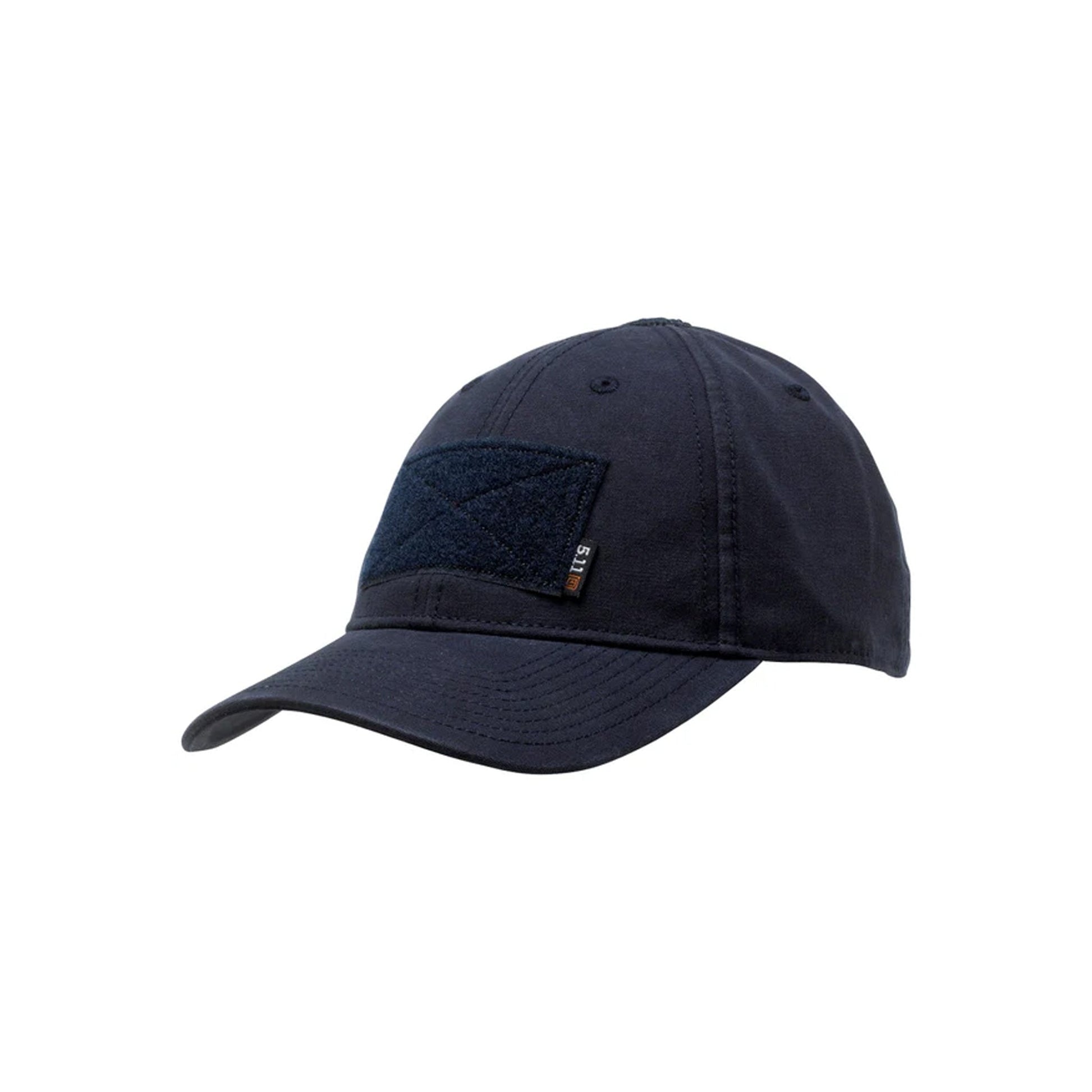- 5.11 logos at back adjustment, on center front patch, at top of crown, and on center seam binding