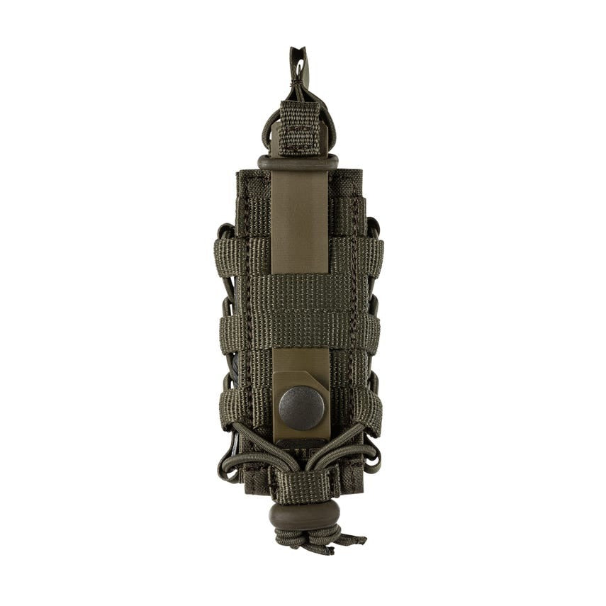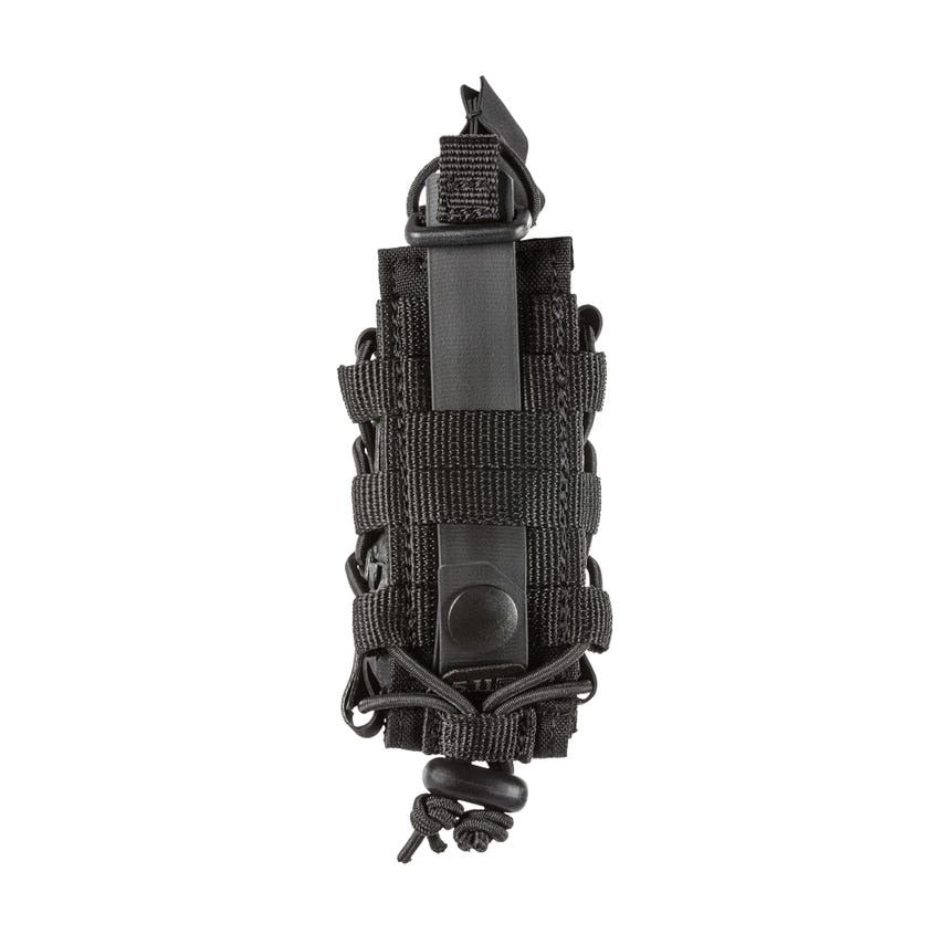The Flex Single Pistol Multi Pouch has our patent pending adjustable side panel bungee cord lock system for various pistol mags or other EDC tools. Flex-HT™ technology provides mounting versatility and easy weaving to all platforms with waterproof TPU coated straps. The front and bottom panels are double layered with 500D for extra durability. An alternate top bungee retention system is included.