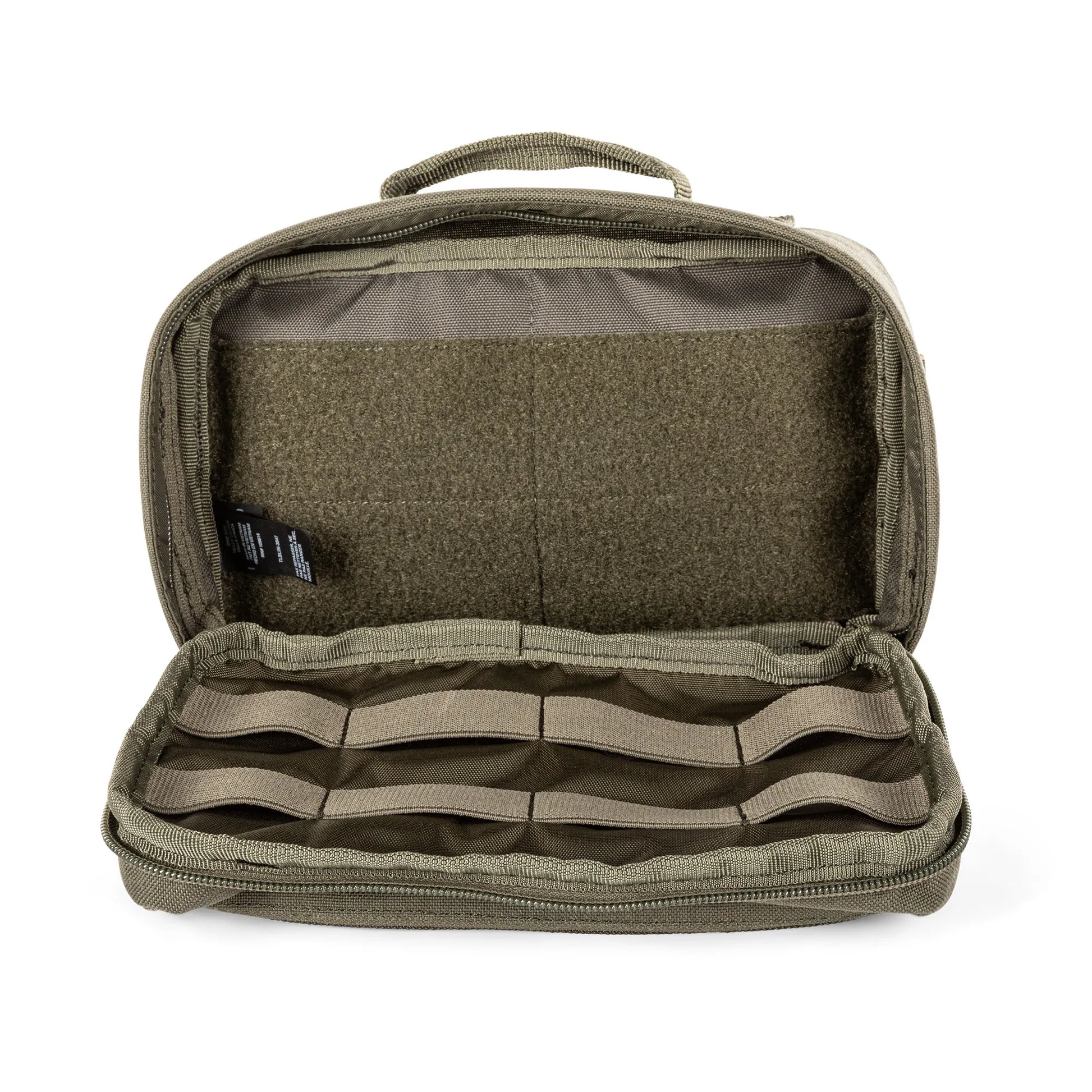 Carry and conceal everyday essentials with the 5.11 RUSH® MOAB™ 3 4L bag. The MOAB 3 integrates with other RUSH® bags using the 5.11® Tier System, and works independently as a crossbody or waist pack. It includes a 1.5" waist strap with a quick-release buckle with four connection points ensuring a comfortable fit in either configuration. External web MOLLE on front and side panels and elastic bands on the bottom panel allow for customization and accessory attachment. Inside the zippered main compartment, we added CCW compatibility with an internal TacTec® loop panel and trigger guard loops in addition to elastic bands for extra org. A top grab handle maximizes carrying options while an external front zippered pocket holds those extras. Whether you need an everyday carrying solution or a modular add-on, the RUSH® MOAB™ 3 is the right-sized option.