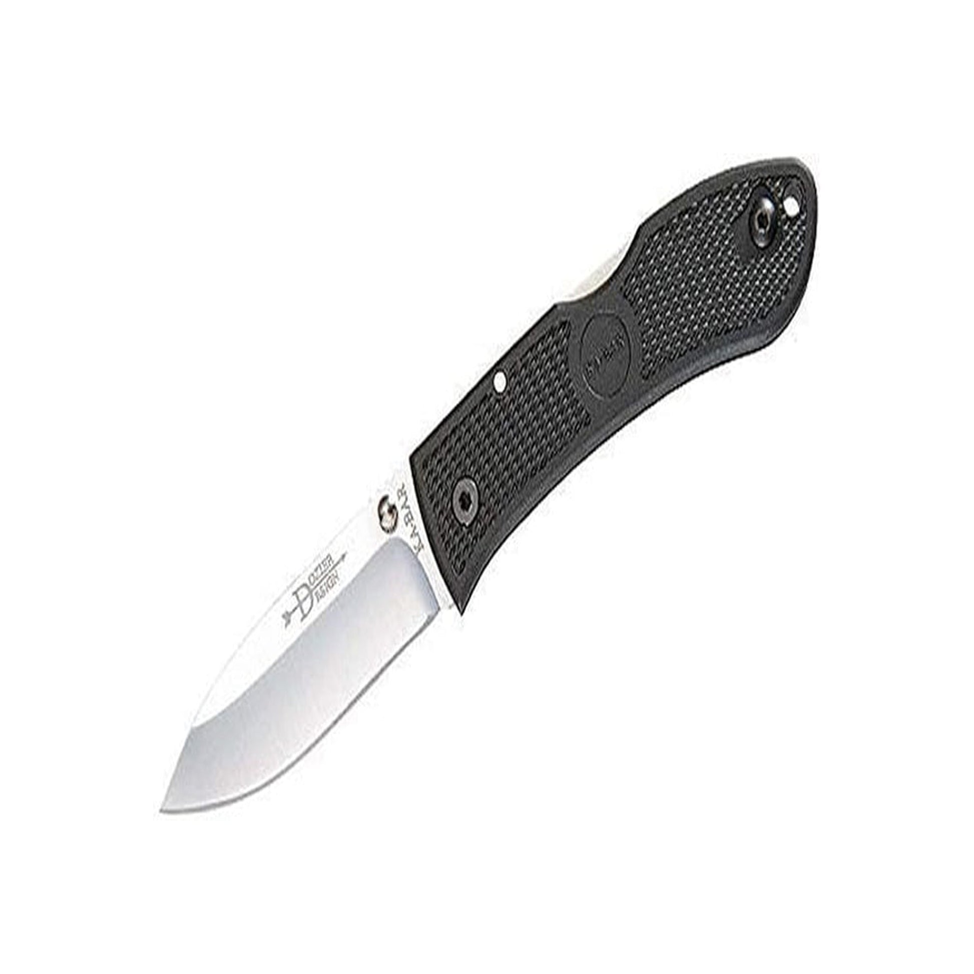 4.25" (10.8cm) closed. 3" (7.62cm) satin finish AUS-8 stainless drop point blade. Black Zytel handle. Thumb stud. Lanyard hole. Pocket clip. Designed by Bob Dozier. Boxed.
