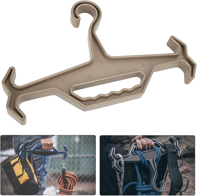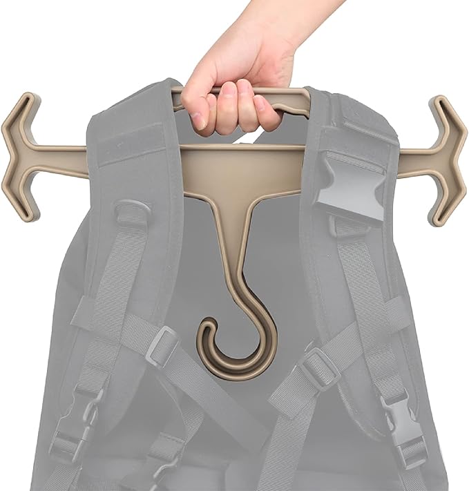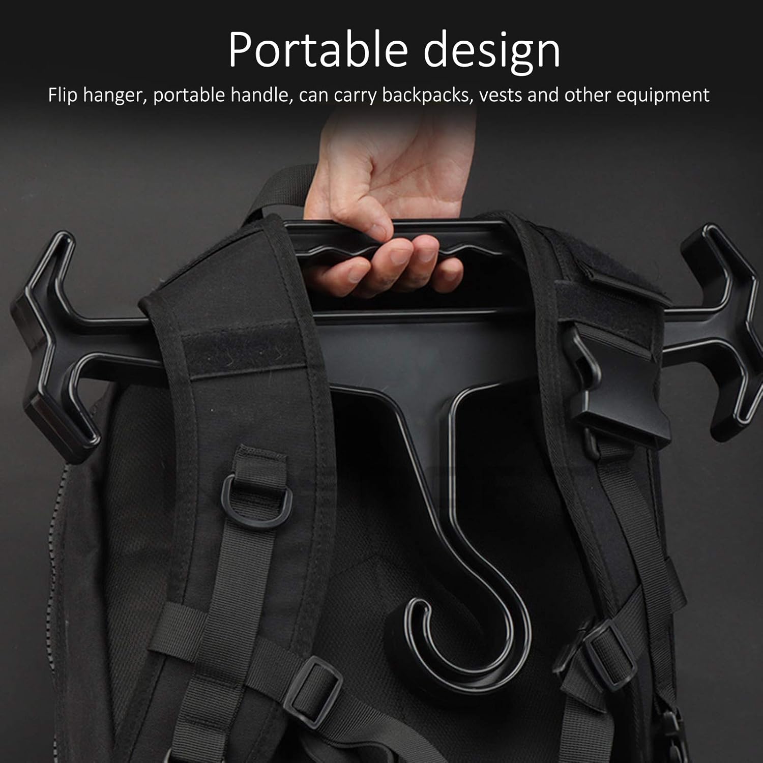 - [Heavy Duty Hangers are Easy to Carry]: Weight duty equipment hanger, heavyweight tactical hangers has carrying handle for carrying backpacks, vests and other gear, the dent on the shoulder of the hunting gear hanger or hanger for tactical vest prevents items such as backpacks or school bags from moving