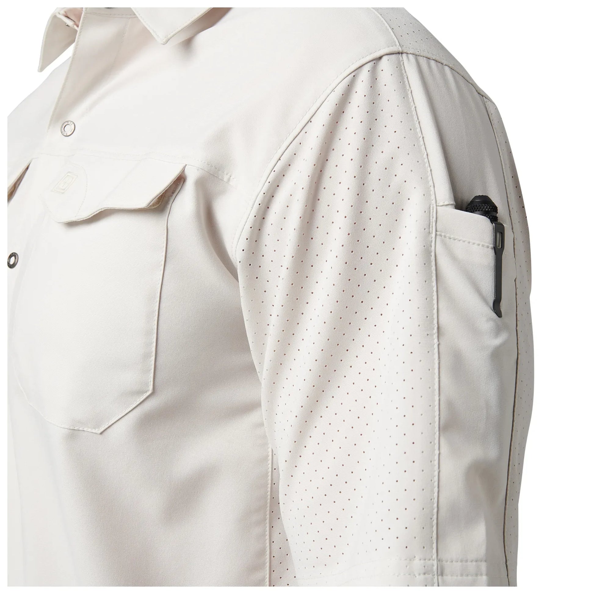Built for any task, anywhere, this shirt delivers ultimate comfort with mechanical stretch fabric, wicking finish and perforated sections throughout. RAPIDraw™ placket and utility pockets complete its tactical purpose.